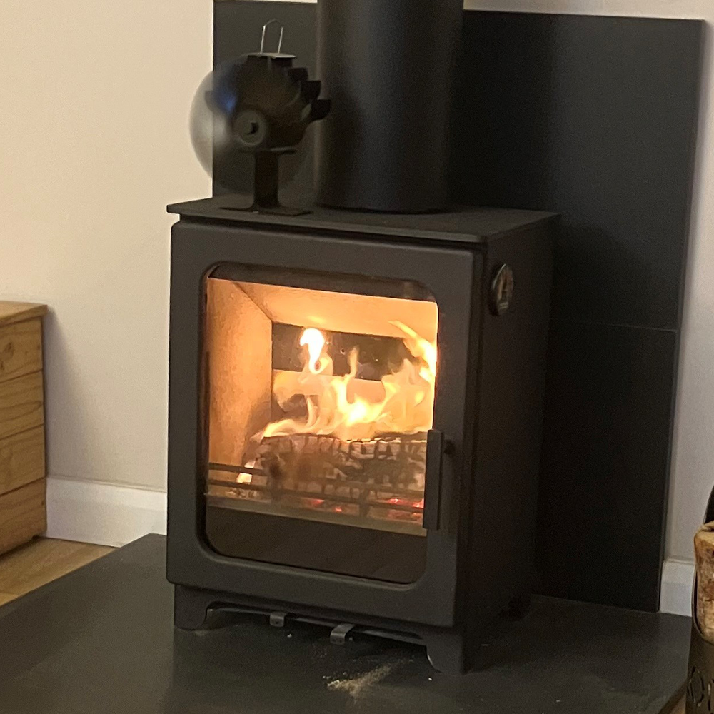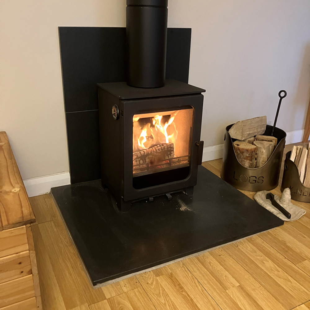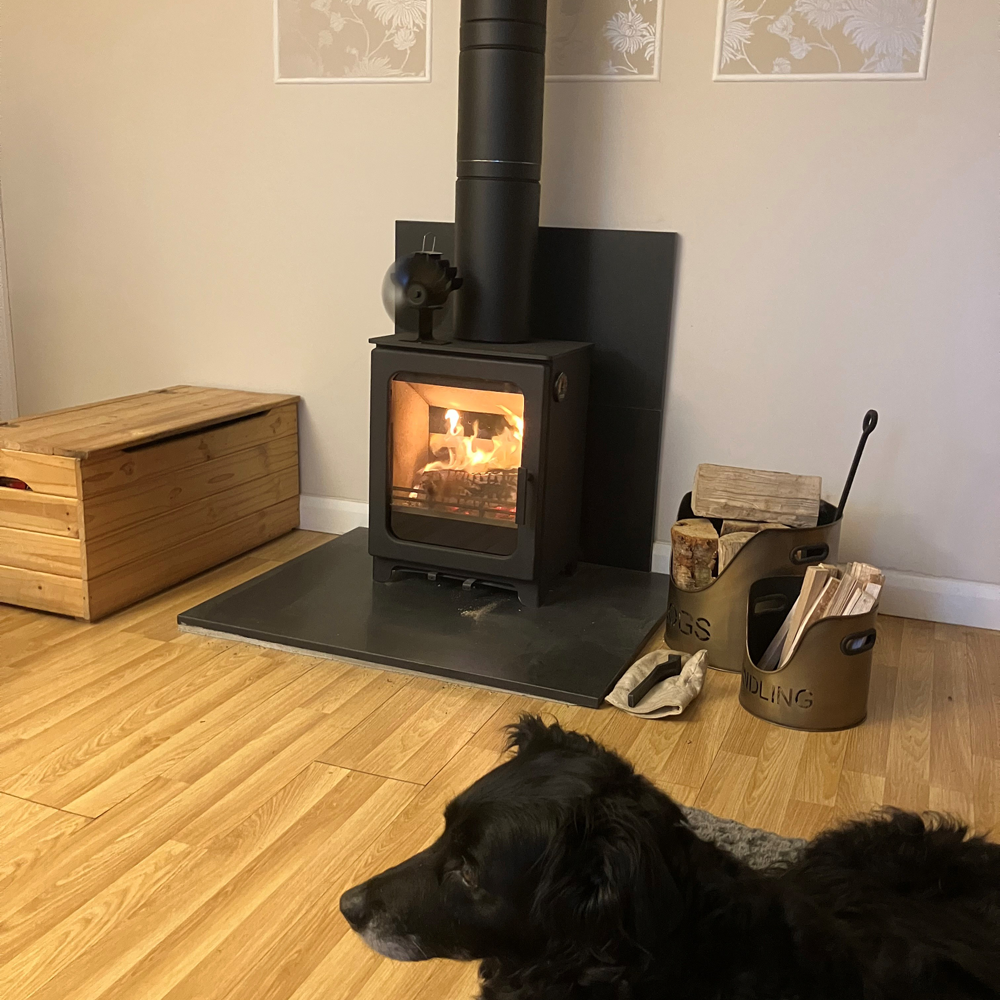 Where a coffee table once sat, is the location of this wood burning stove. A bespoke hearth and back panel in honed black granite created the foundations for this project. A complete flue system was then installed and connected to the popular ACR Woodpecker WP5 multifuel stove. We think you’ll agree that the new focal point beats a coffee table and at least one member of the household thinks so too!